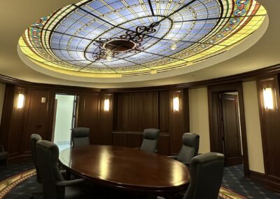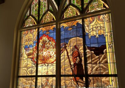 Working from our studio in Edmond, Oklahoma, we combine traditional stained glass techniques with modern restoration methods to carefully repair, rebuild, and protect historic stained glass windows for churches and historic buildings.