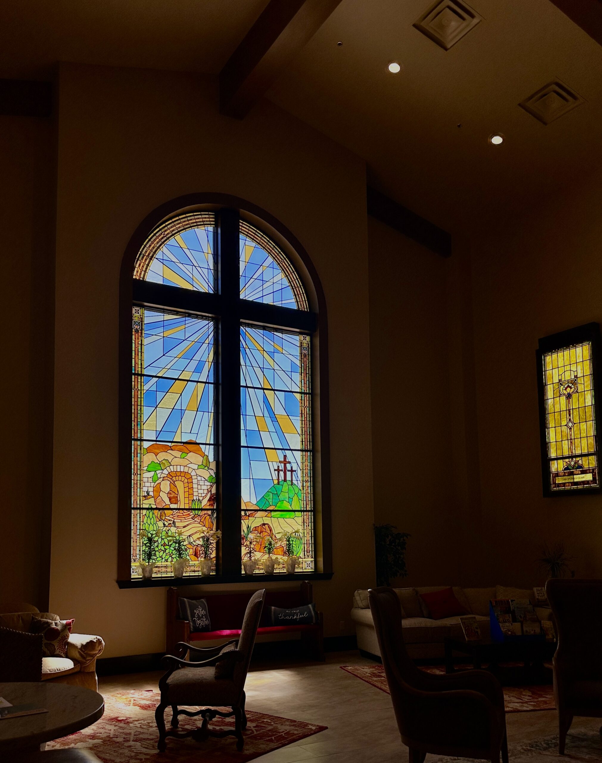 Custom designed stained glass windows and architectural glasswork created by hand for churches, homes, and commercial spaces.